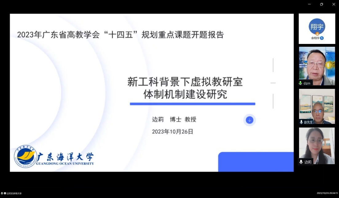 10月26日晚上8点30分,我校获批1项广东省高等教育学会“十四五”规划2023年度高等教育研究课题通过腾讯会议举行。西北工业大学段哲民教授、哈尔滨工程大学赵旦峰教授和华南理工大学电子与信息学院副院长余翔宇副教授担任课题开题评议专家。
