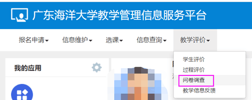 二、调查方式:登录伟德bv1946官网教学管理信息服务平台,教学评价-问卷调查: