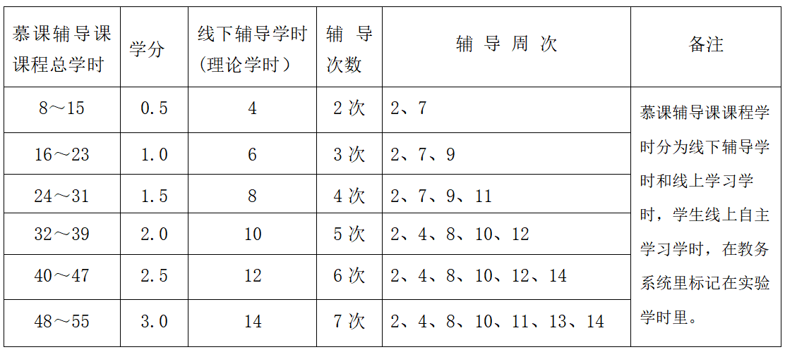 3.慕课辅导课课程学时与学分的对应关系说明及课程辅导次数、辅导周次安排
