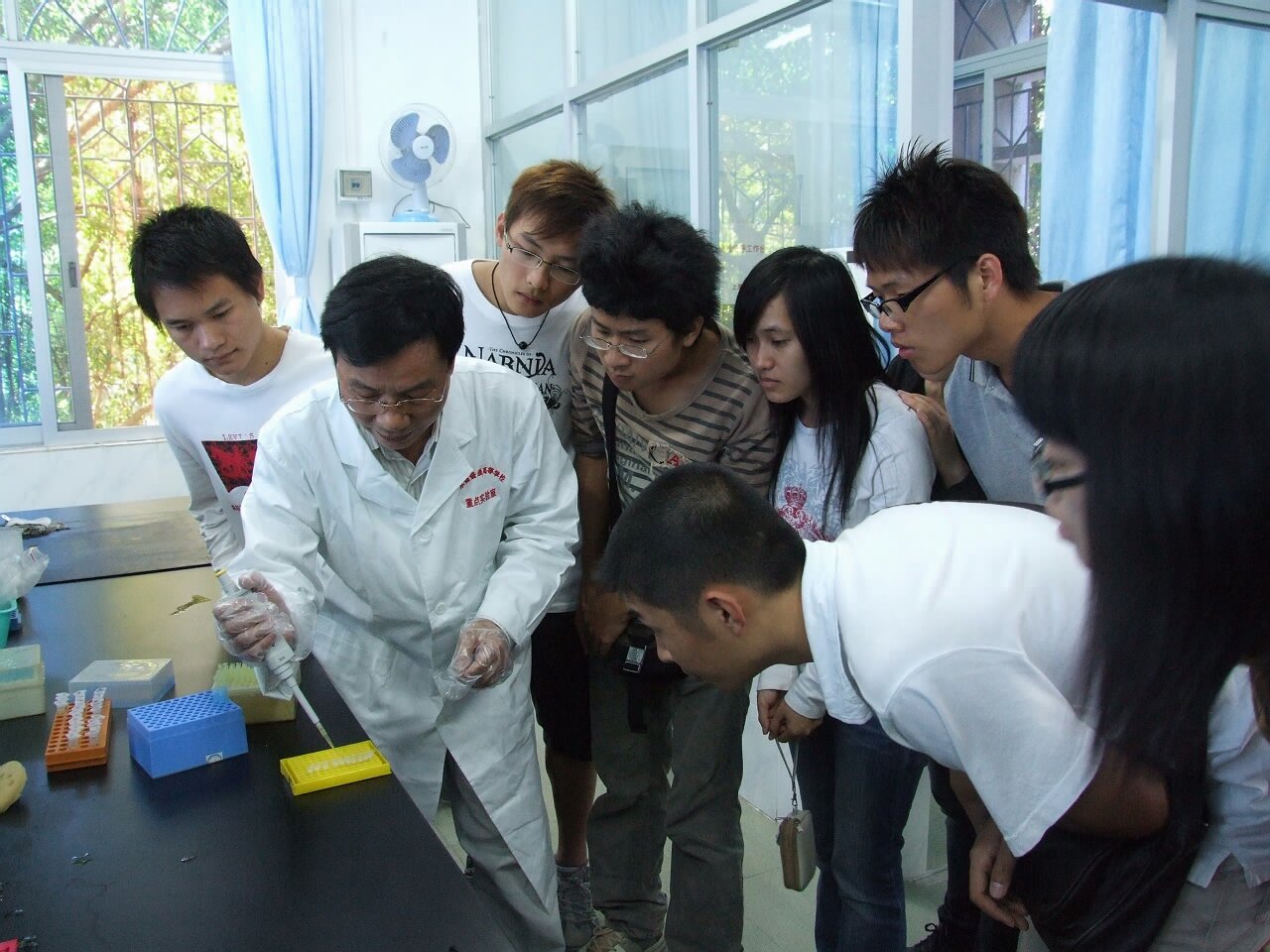 2、刘楚吾教授指导学生进行发育生物学实验.jpg