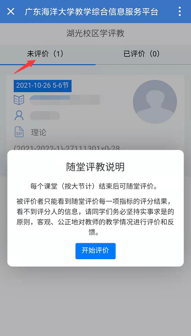 2.如一门课程有多个教师授课的,请评价实际授课的教师即可,未授课可不评价。