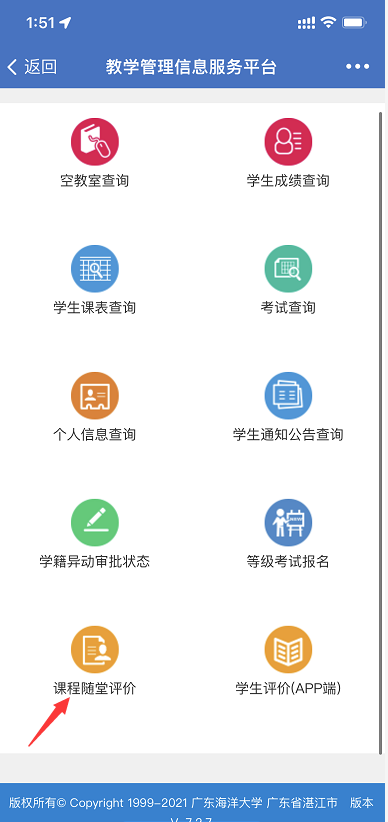登录企业微信的“教务系统”-“课程随堂评价”: