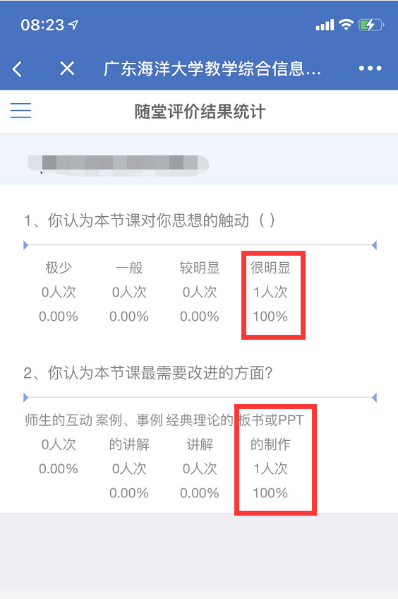 1.被评价者只能看到随堂评价每一项指标的评分结果(如下图),看不到评分人的信息,请同学们务必坚持实事求是的原则,客观、公正地对教师的教学情况进行评价和反馈。
