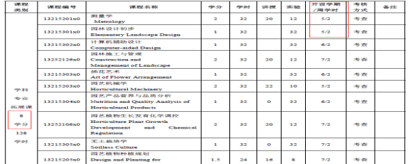 (1)学科专业拓展课学分要求,如园艺专业学科专业拓展课要求8学分。